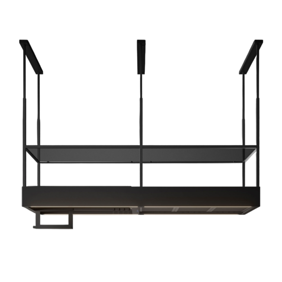Falmec Spazio Cookerhoods by Hafele elevate the concept of suspended hoods with their innovative design. The word "spazio," meaning space in Italian, and reflects their unique ability to maximise the space around the hood, offering versatile, multi-level use for a dynamic cooking experience.